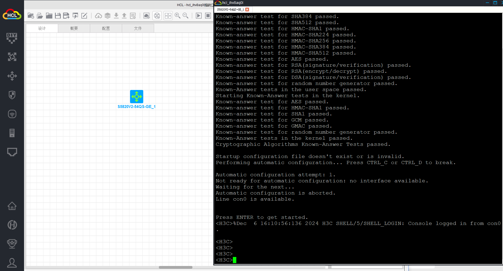 1. 打开HCL 启用一台路由器或交换机