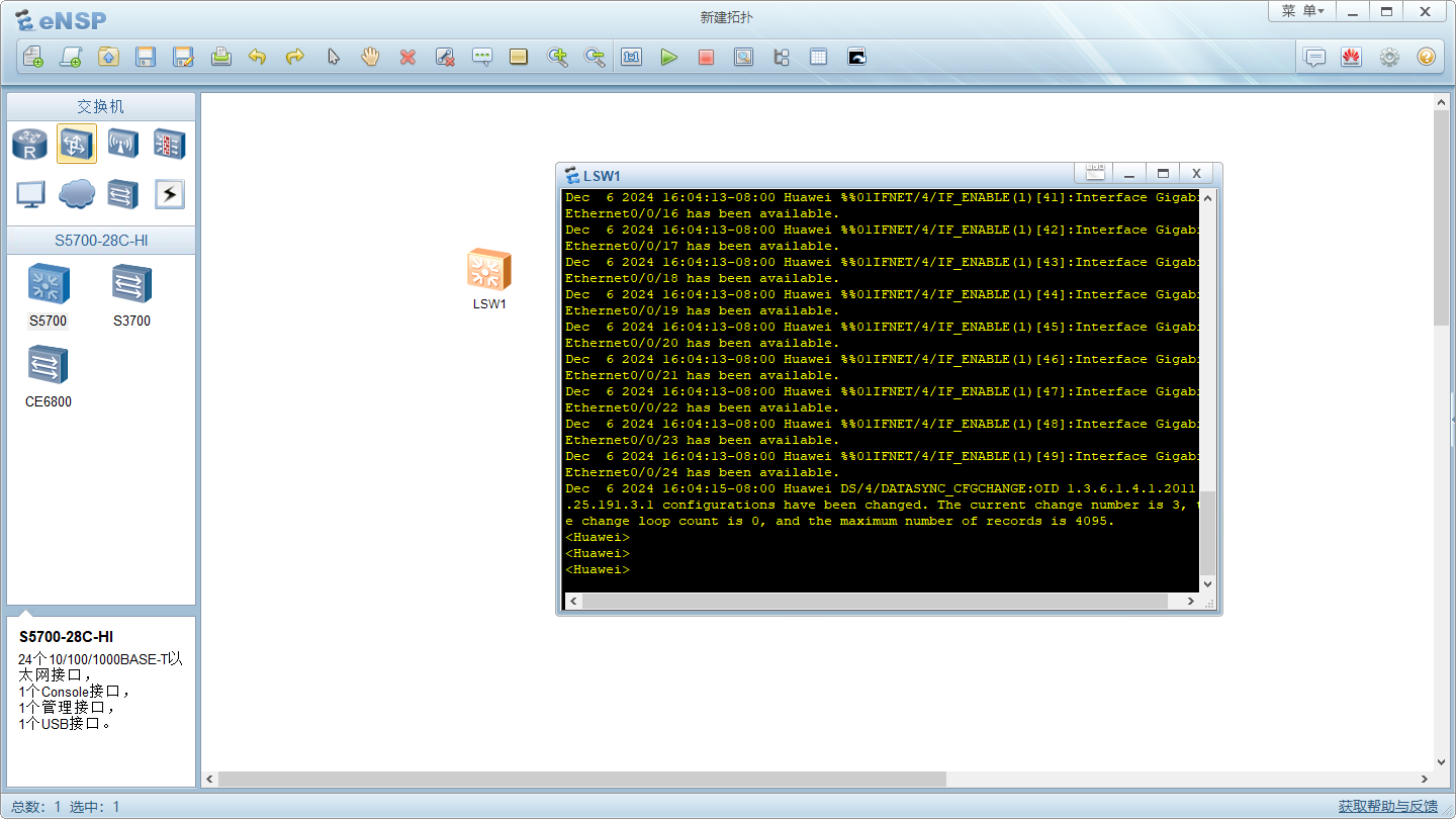 2. 打开eNSP 启动一台路由器或交换机
